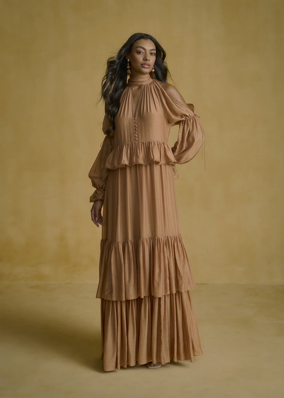 Cold-Shoulder Tiered Maxi Dress