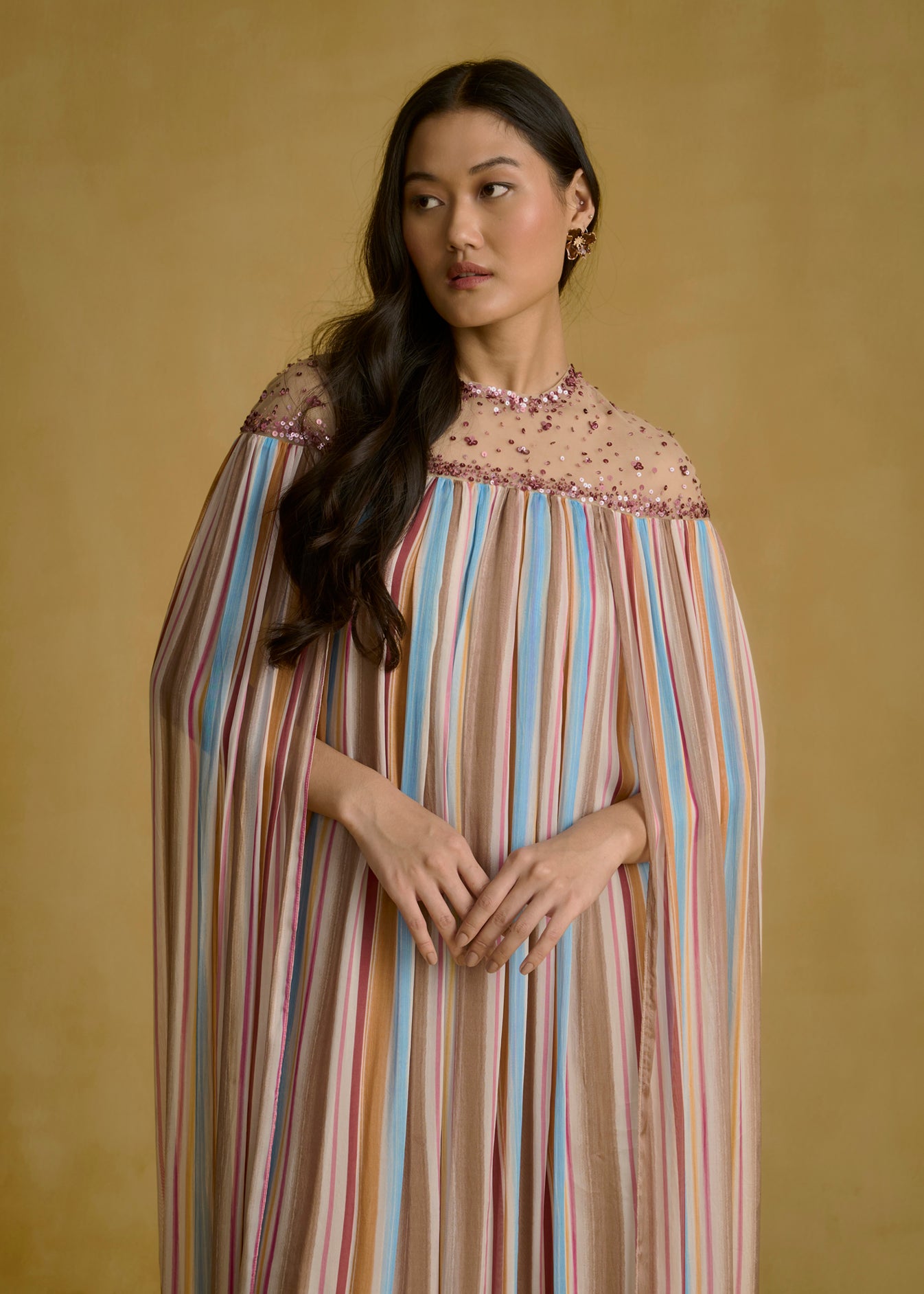 Embellished Cape Maxi Dress